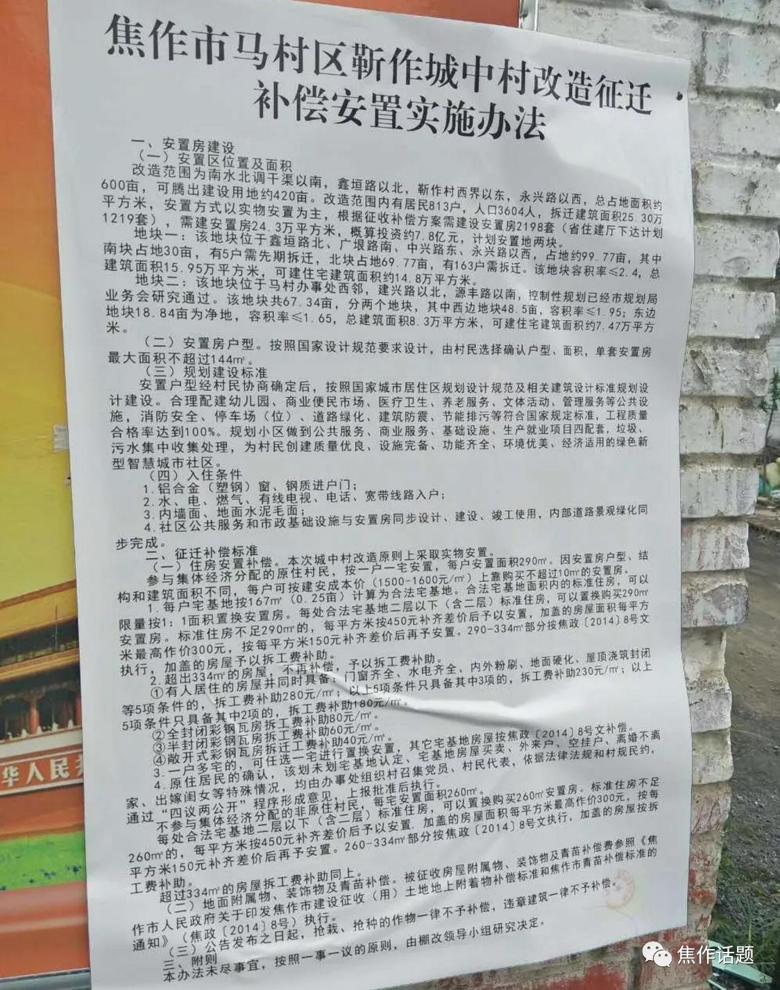 焦作马村区靳作城中村拆迁公告!