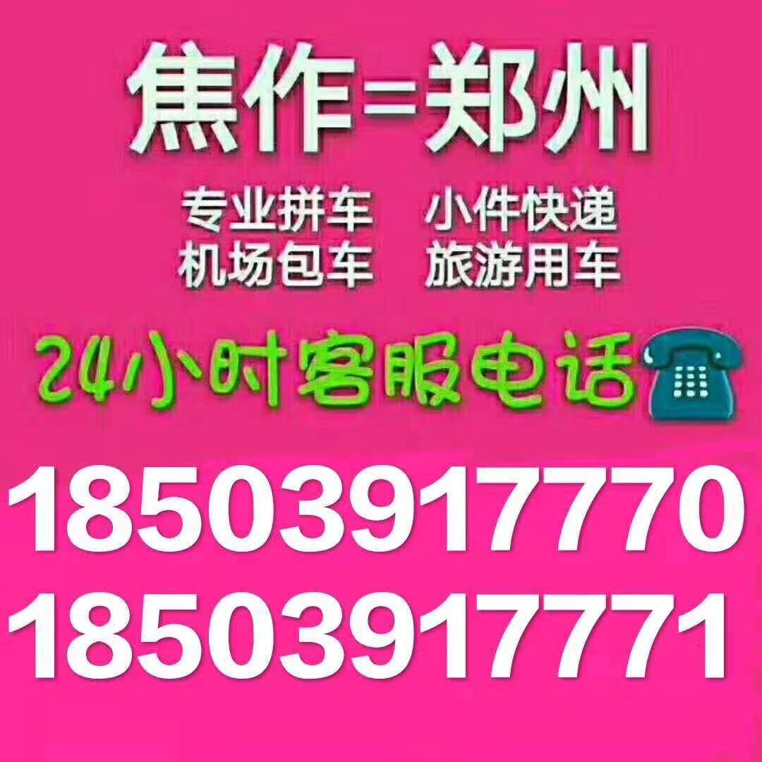 《鑫达约车》 焦作至郑州往返 焦作发车时间: 上午5:00至晚上22:00! 郑州发车时间: 上午7:00至晚上23:00 随约随走,包车全天发车 带稍小件,城区内接送! 高铁站火车站,飞机场, 提供正规报销**!诚信拼车! ...