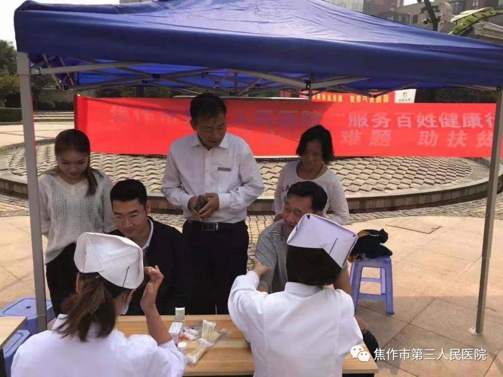 9月27日上午,焦作市第三人民医院病房支部组织党员志愿服务队在龙源湖社区开展“守初心、解难题、助扶贫、庆丰收”服务百姓健康大型义诊活动,以深入开展“不忘初心、牢记使 ...