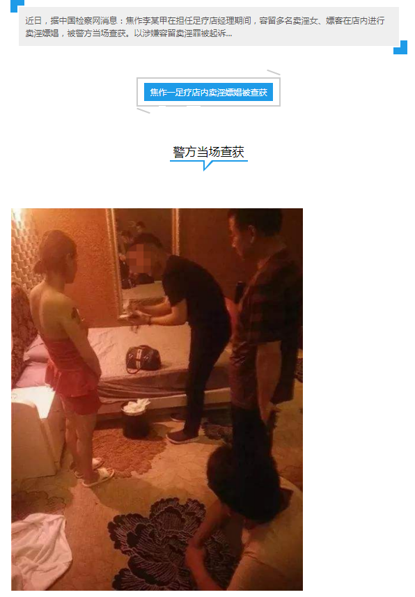 焦作一足疗店卖淫嫖娼,警方当场查货,店经理被公诉... ...
