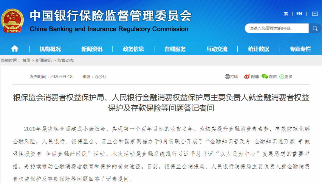 本帖最后由 imissyou11 于 2020-9-21 09:09 编辑 银保监会网站9月18日消息银保监会消保局、人民银行消保局主要负责人日前在答记者问时重申没有高回报、低风险的金融产品高收益意味着高风险“保本高收益”就是金融 ...