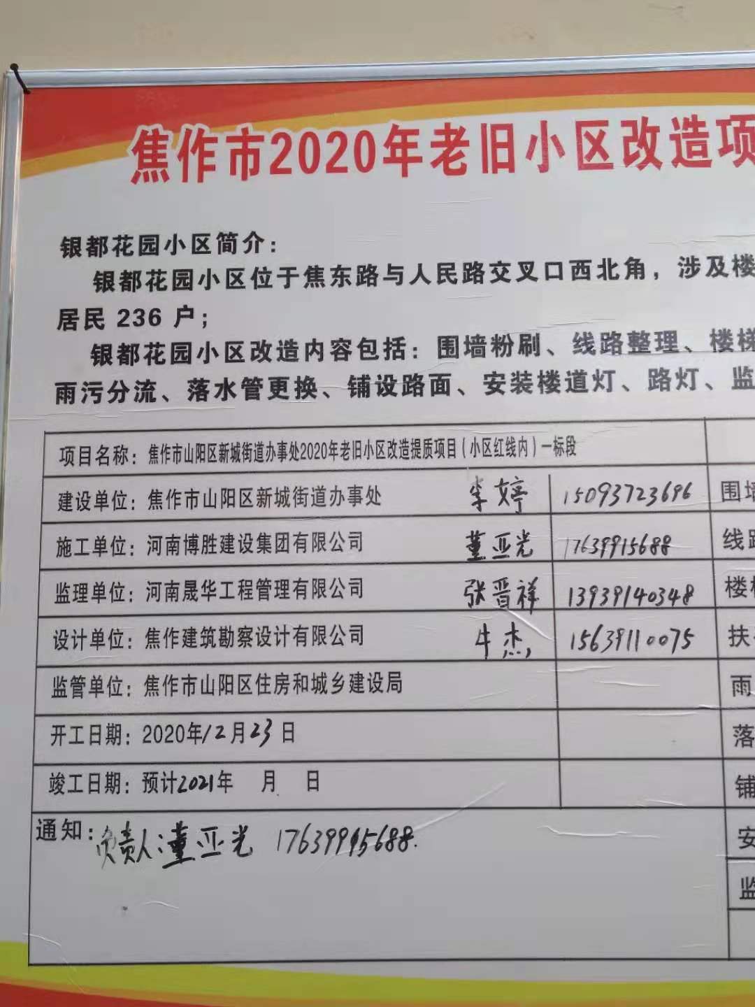 国家的好政策就是对老旧小区进行升级改造,山阳区银都花园几百万的改造工程,换来的就是这样子的施工质量,路面是大雨大存水,小雨小存水,种的草坪是这样子的,楼梯扶手不刮腻子不处理就刷稀水漆,节省到极点了。问 ...