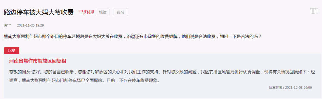 好消息! 近几年焦作很多网友反映过焦南大张惠利佳门口停车收费乱象 近日,焦作市解放区回应了! 这些彻底明确了!全部取缔! 官方回复 焦南大张惠利佳超市那个路口的停车区域总是有大妈大爷在收费,路边还有市 ...