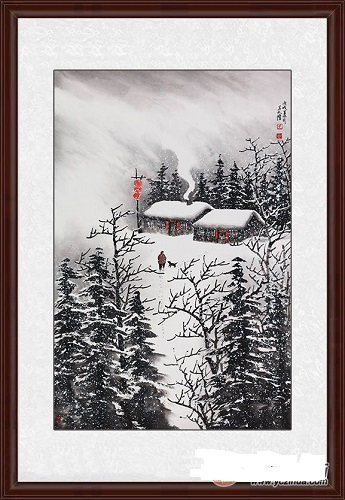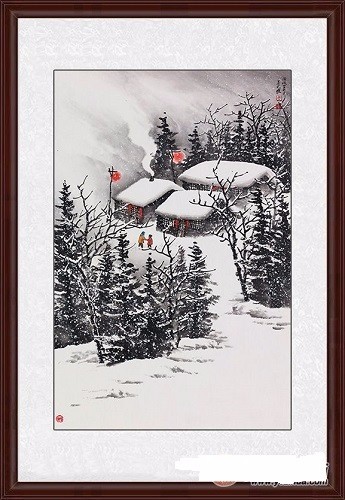 当代名家吴大恺雪景山水画《雪中温情》【作品来源:易从网】