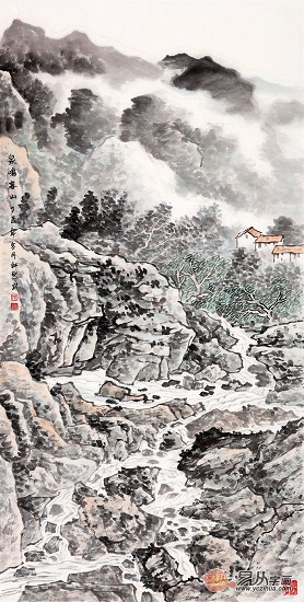 室内装饰画 何新起四尺竖幅山水画《泉鸣春山》【作品来源:易从网】