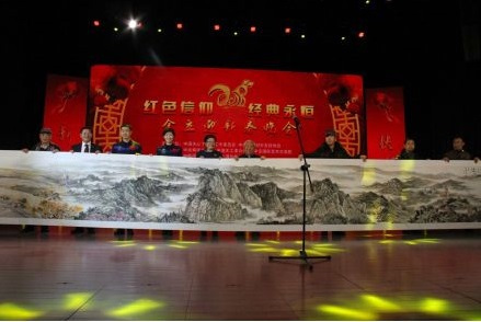 2018年1月20日在中国政协礼堂参加创作《中国梦·航天情》的十米长卷为中国航天捐赠仪式。航天人刘洋代表中国航天接收。
