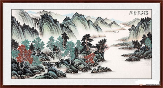 适合收藏字画 吴大恺八尺横幅青绿国画《秋月》【作品来源:易从网】