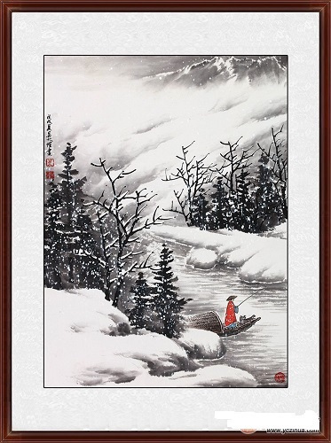 雪景小品画 吴大恺最新国画《独钓寒江雪》【作品来源:易从网】