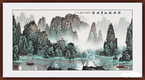 吴大恺最新创作漓江山水画《烟雨漓江翠欲滴》【作品来源:易从网】