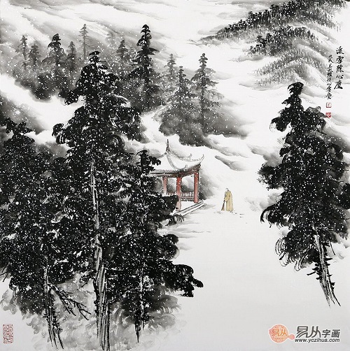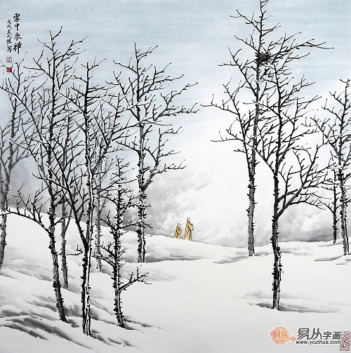 雪景山水画 吴大恺潜心之作国画《雪中参禅》【作品来源:易从网】