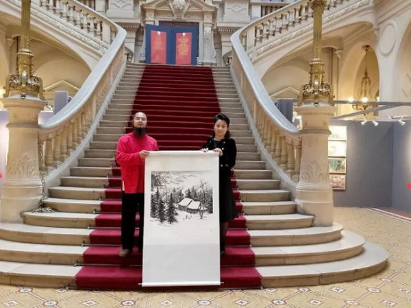 2017年8月21日,吴大恺山水画作品在巴黎十区政 府大厅为期四天展览。
