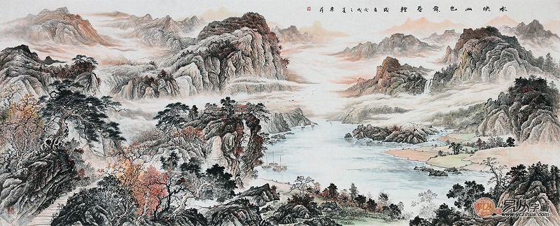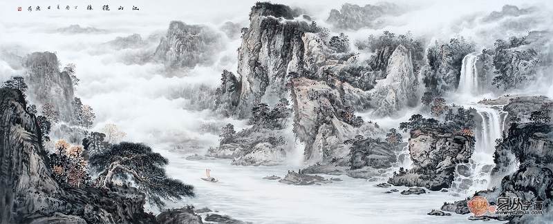 赵洪霞最新力作八尺山水画作品《江山揽胜》【作品来源:易从网】