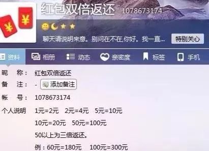 赵某在玩手机时,看到一个扫码返利的信息,称100元返888元,200元返1888元,以此类推。其就添加了对方QQ号,共给对方扫码支付了13214元后发现被骗。