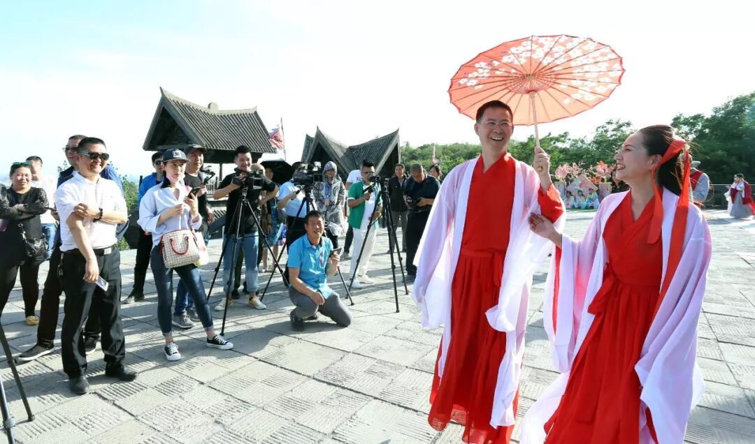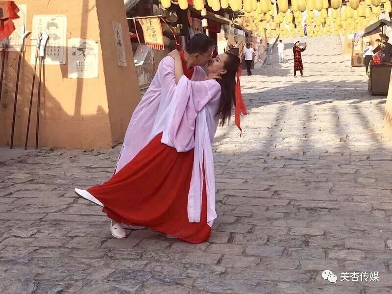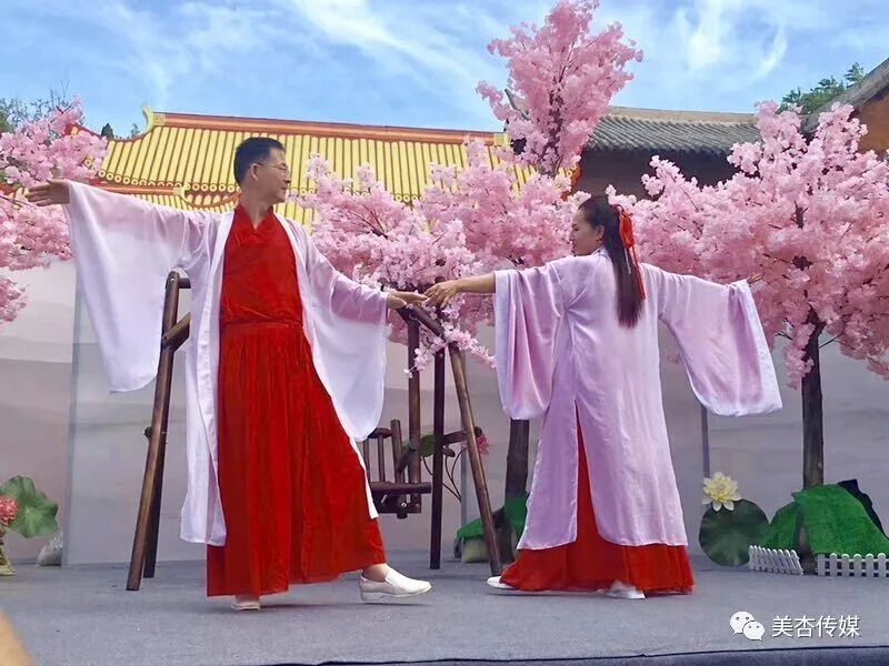 主持人:各位好朋友们,大家好。这里是焦作市首届汉服动漫文化周焦作影视城的活动现场,在两年前的今天,网红达人飞刀大王和美杏公主的结婚庆典就在焦作影视城盛大举行。从相识相知到相恋相爱,从求婚结婚,再到结婚周年纪念日,他们在焦作影视城留下了美好的爱情记忆。今天是2019年5月20日,是他们的结婚两周年的纪念日,也是他们秀恩爱的日子。究竟他们会采取什么方式来纪念他们的爱情,让我们拭目以待。看,他们来了。