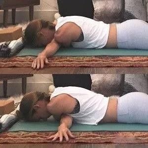 臀部坐脚跟,双手在身体两侧,额头贴地