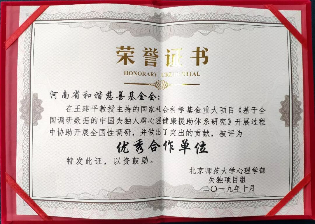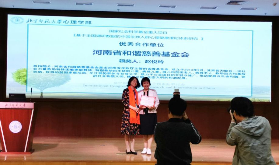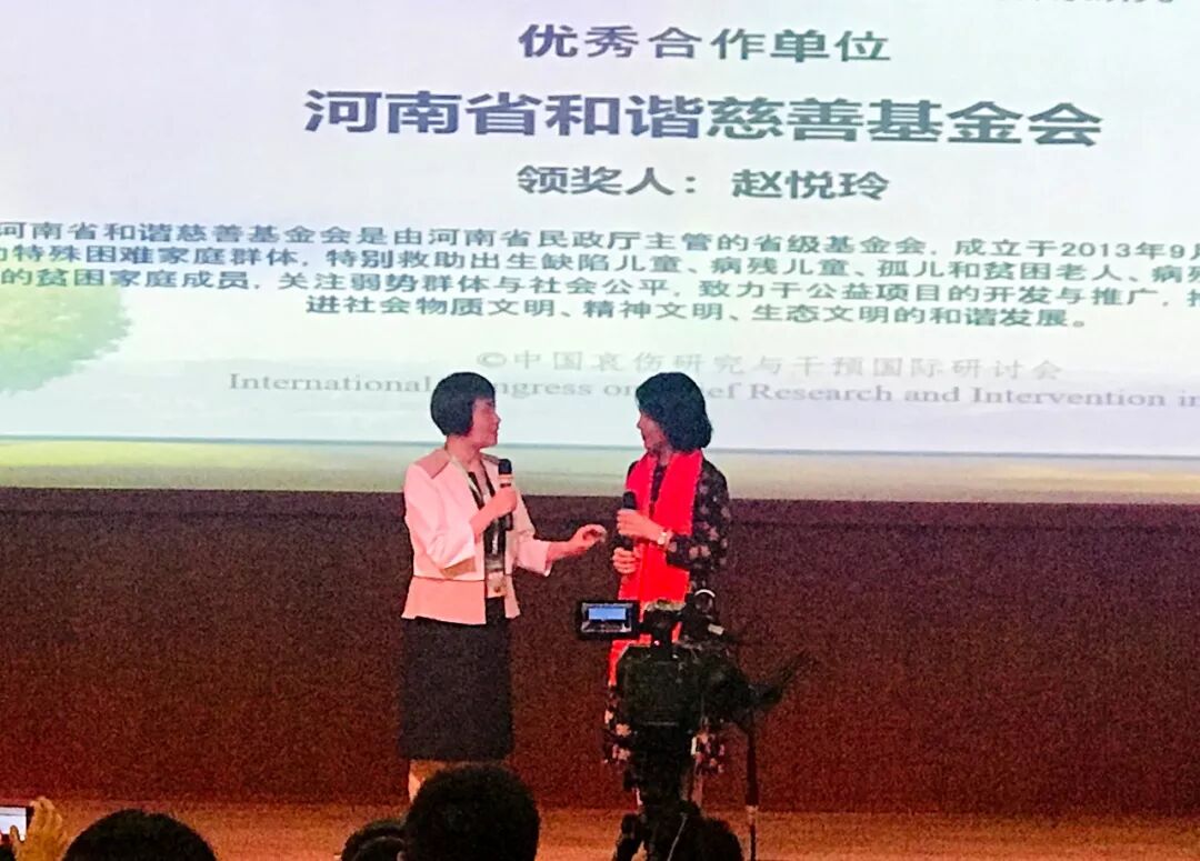 河南省和谐慈善基金会副秘书长赵悦玲在发言中表示:“很高兴能够参与王建平老师负责的国家社科重大项目的调研工作,更感谢的是小小的参与,获得大大的奖励,这份荣誉属于所有参与这个项目的河南的失独家庭。六年来,我们基金会的工作人员和广大志愿者作为失独家庭的旅途伙伴,彼此用生命感动生命,用生命温暖生命,不仅得到了失独父母的信赖和感恩,而且也得到了政府有关部门的高度肯定与赞赏。河南省和谐慈善基金会愿为各高校和科研机构提供实践基地,愿与高校和相关科研机构结成战略伙伴,携手共创和谐社会。”