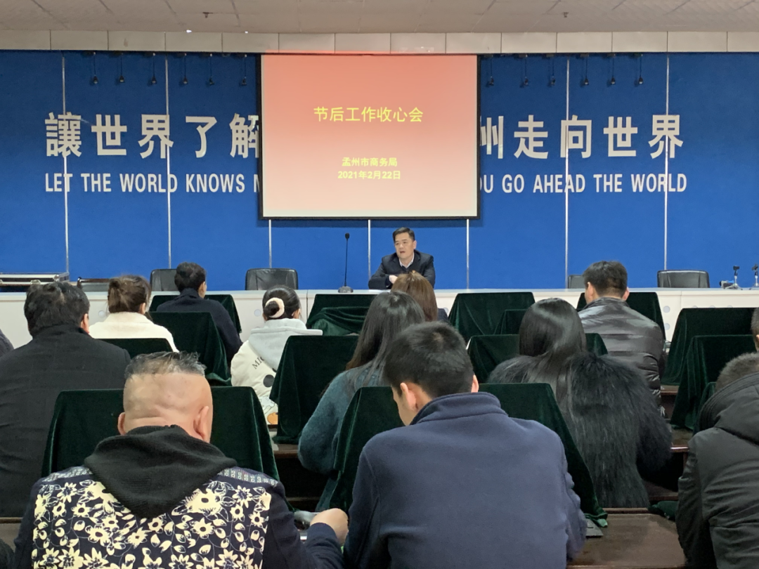 会议强调,一是收假收心,立即进入工作状态。全体干部要尽快从春节假期节日氛围中走出来,精神上振奋起来,思想上警醒起来,工作上紧张起来,保持良好工作状态。二是突出重点,统筹推进各项工作。要在全面总结2020年工作同时,认真分析研究招商引资、市场供应、外资外贸等各项目标任务,围绕“双争双创一突破”工作目标,精心谋划,统筹安排,保证全面完成任务。三是完善机制,加强作风能力建设。各科室在原有规章制度的基础上,尽力完善各项制度,保证机关作风建设再加强,展现商务干部良好精神风貌。