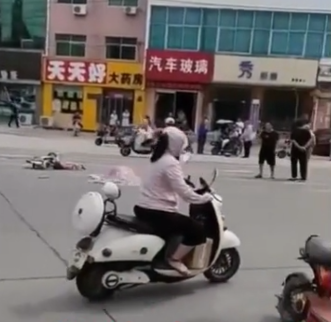 今天中午,焦作孟州市东韩愈大街和武松南路交叉口发生惨祸!一辆电动车车主被撞身亡,已经盖上了布,家属们跪地痛苦......