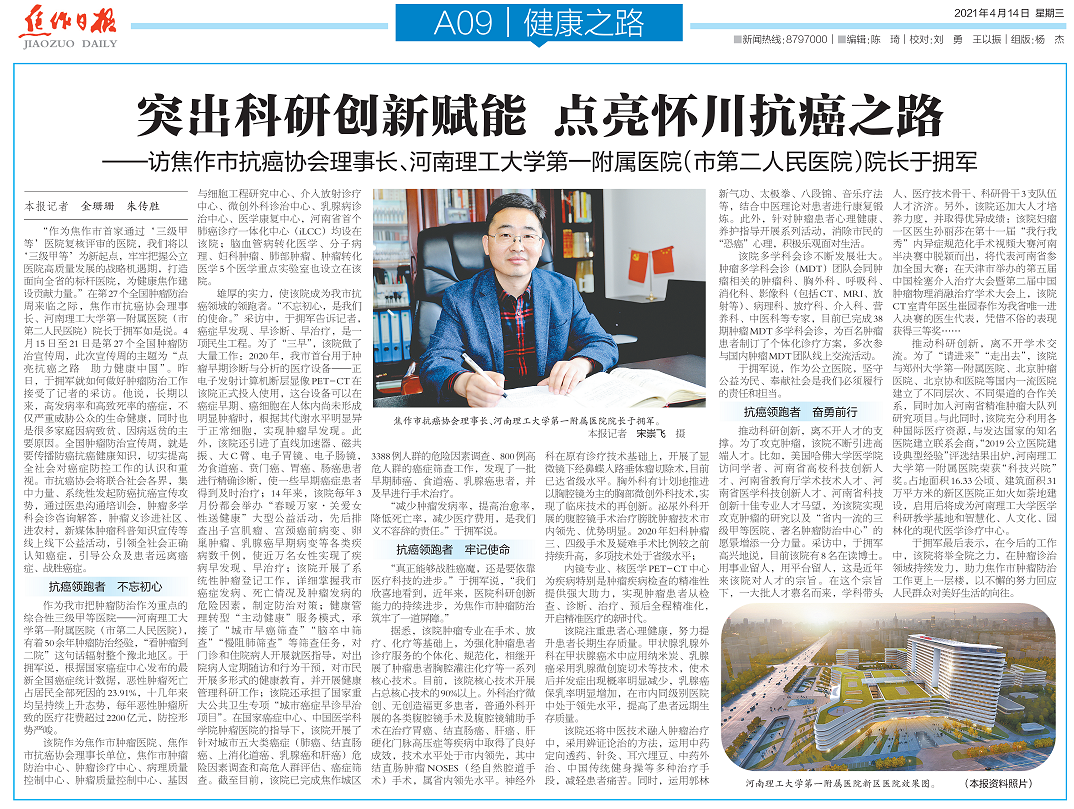 本帖最后由 论坛小编大白 于 2021-4-15 09:27 编辑 于拥军最后表示,在今后的工作中,该院将举全院之力,在肿瘤诊治领域持续发力,助力焦作市肿瘤防治工作更上一层楼,以不懈的努力回应人民群众对美好生活的向 ...