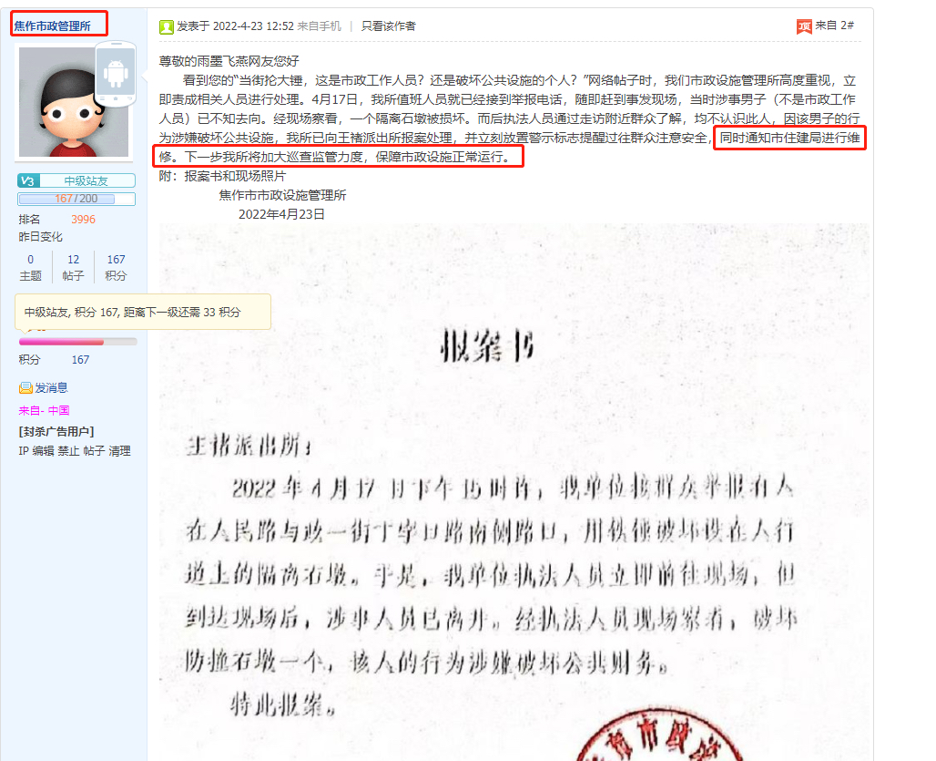 | 从一个隔离石墩看焦作的城市管理,市民最有发言权。饼mua分析的好! |